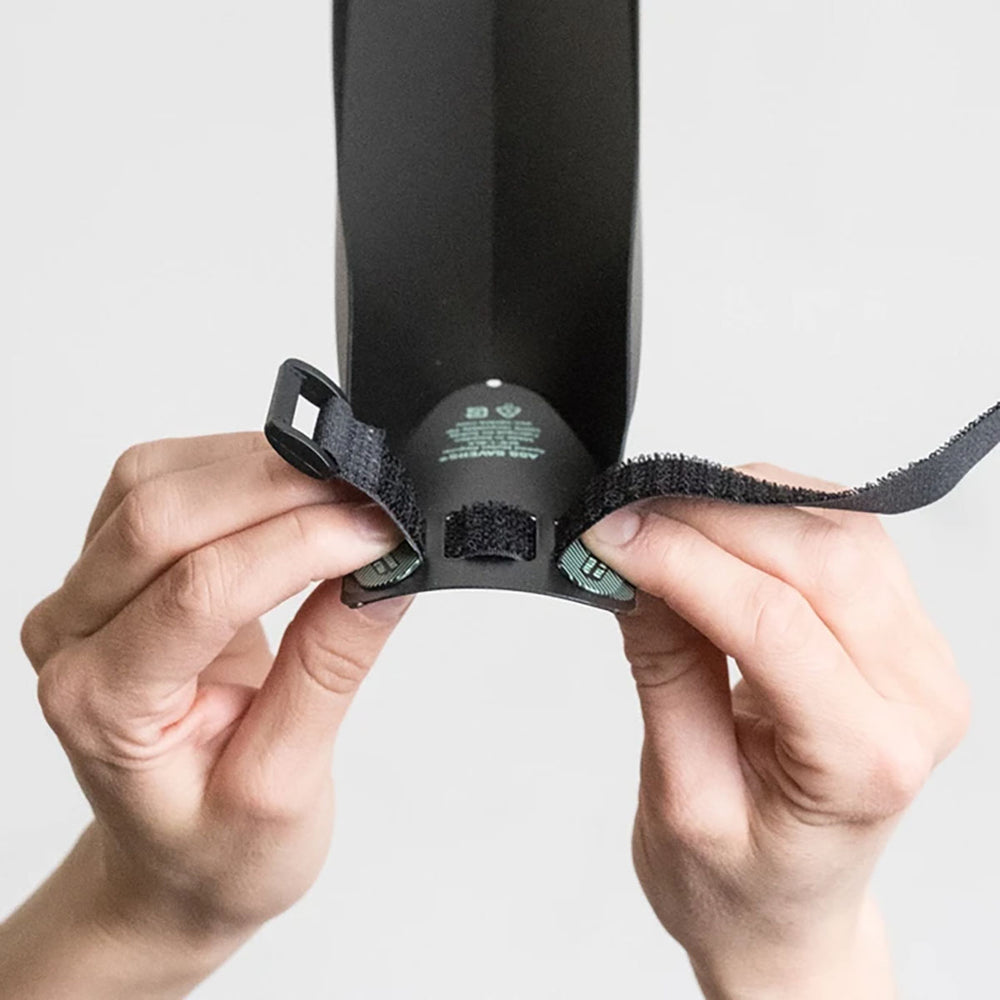 MOUNTING TIPS: Fold the outer edges of the speed mullet at 90 degrees so that they are facing forward and place the mudguard as close to the wheel as possible with enough clearance for steering. This ensures maximum feet protection. For optimum drivetrain protection, fold the outer edges slightly and place the mullet further down, closer to the chainring.