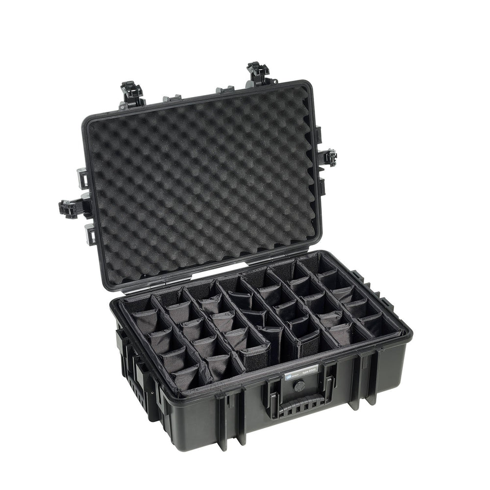Depending on your use, the type 6500 can be equipped with various inserts. Smaller technical equipment and accessories can be placed in the padded main compartment insert, then given added protection and support with an egg crate foam insert for under the lid. The case can also be equipped with precut pick-and pluck foam.