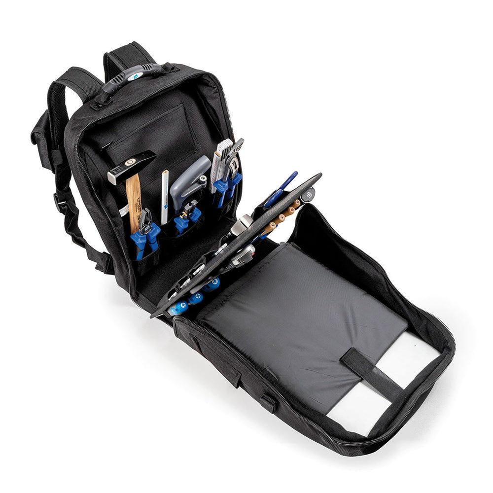 The move technician's backpack not only offers plenty of storage space, it also organizes your tools. Contents are safely transported while your hands are left free. Dependable stowing (storing) of contents, freedom of movement for the task at hand.