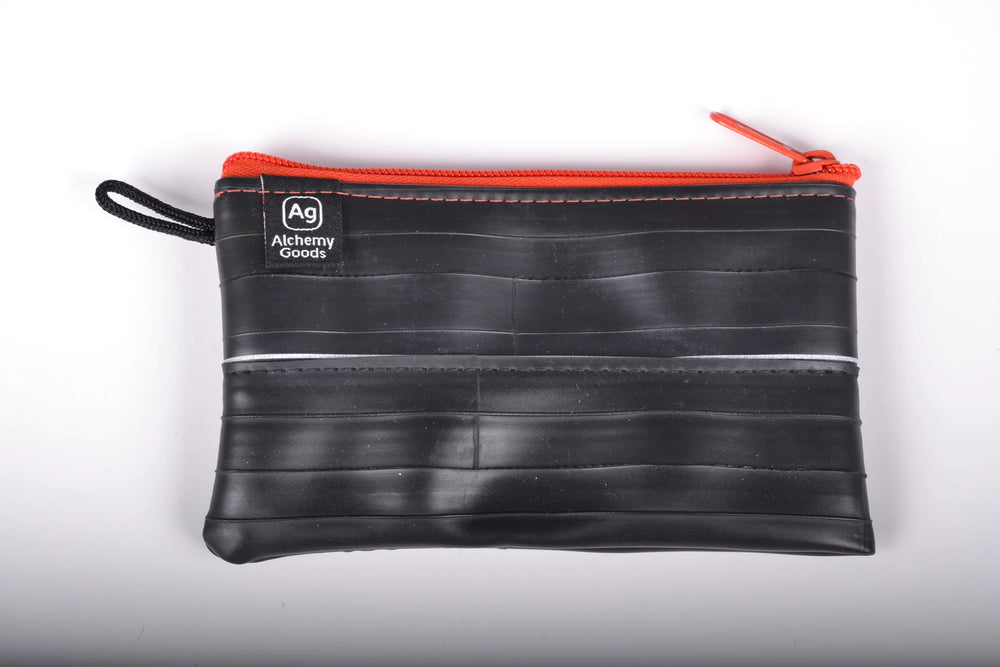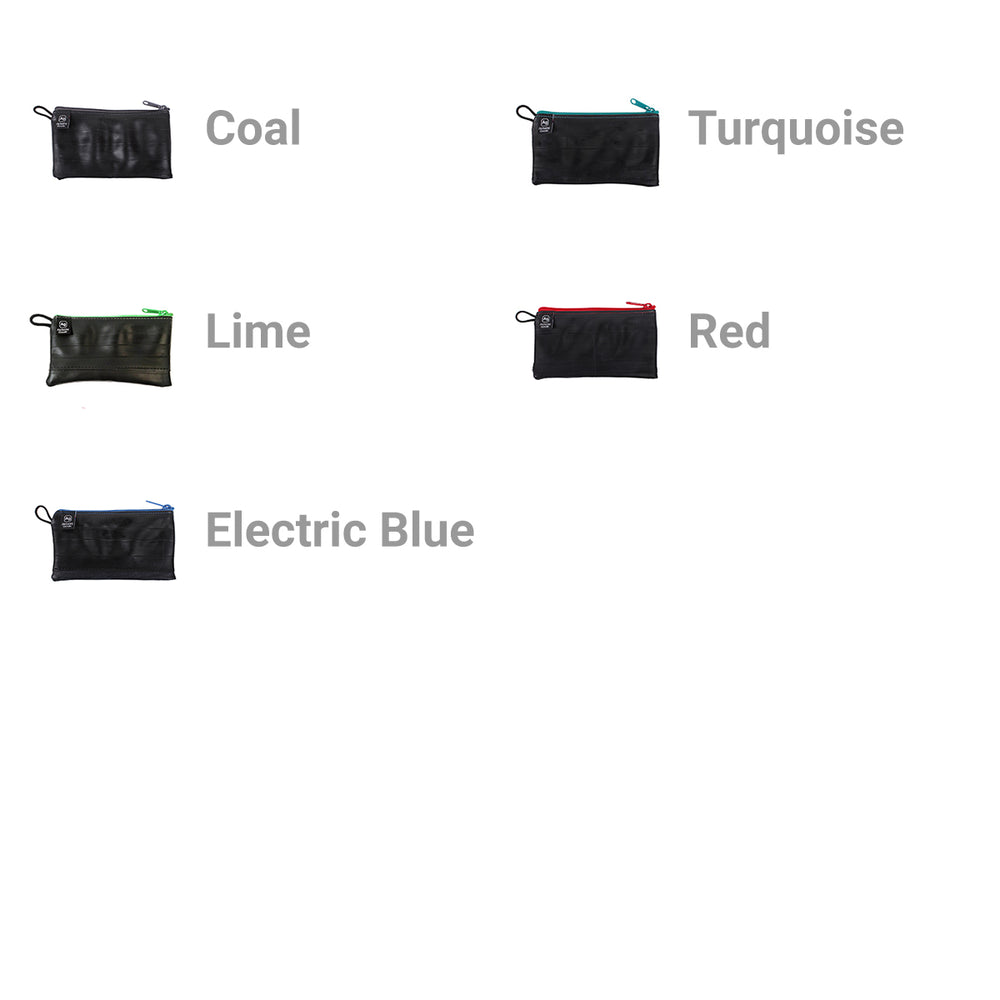 Designed to be simple and a stylish storage solution. These pouches are made from upcycled bicycled inner tubes to help protect your gear. The mid-size pouch can carry your phone, tools, cash, and any other small belongings.