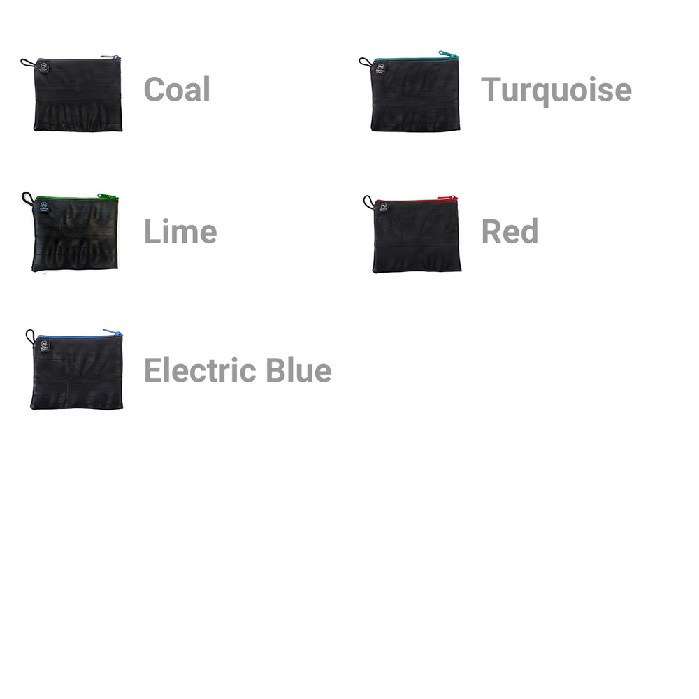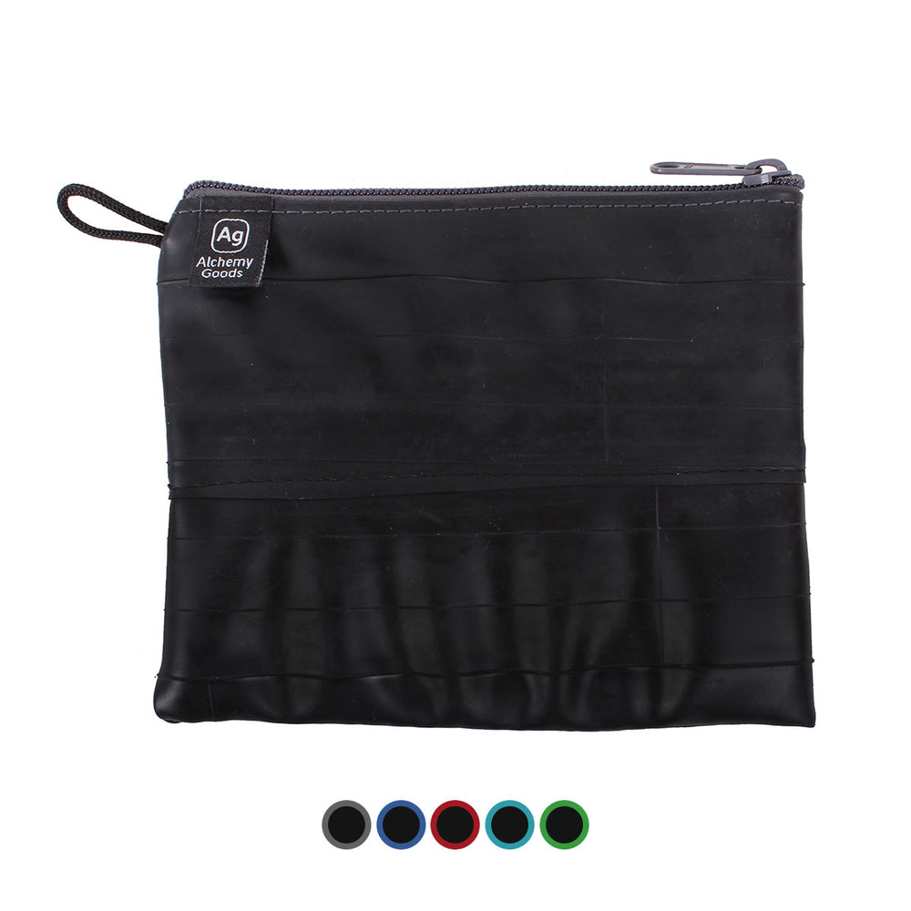 Designed to be simple and stylish storage solutions, these pouches are made from upcycled truck inner tubes so your stuff stays protected and dry. The large pouch protects your sunglasses, pens, or small hand tools.