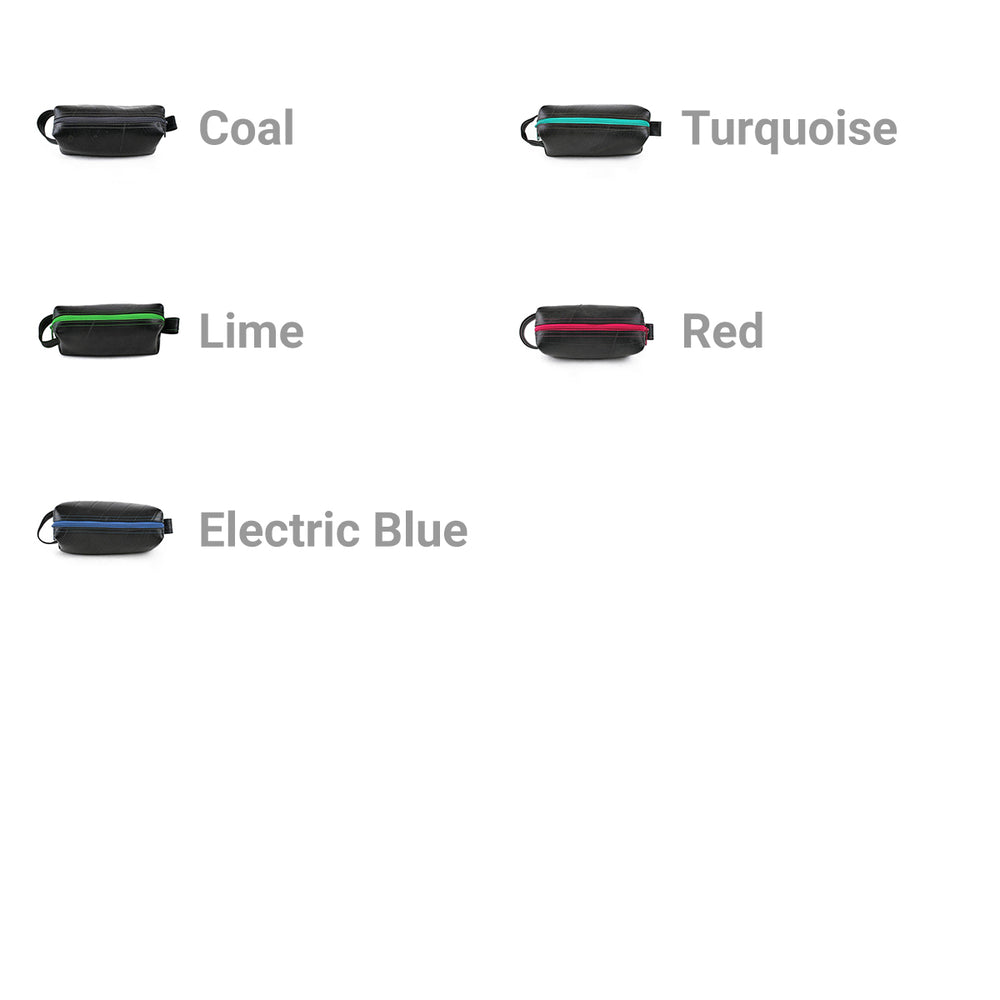 The Ag Elliott Mini is a smaller version of our popular Elliott. For those who travel light, the Mini has just enough room for all of your essential grooming accessories. This clever and upcycled travel companion is durable and highly water-resistant. Made from reclaimed truck inner tube.