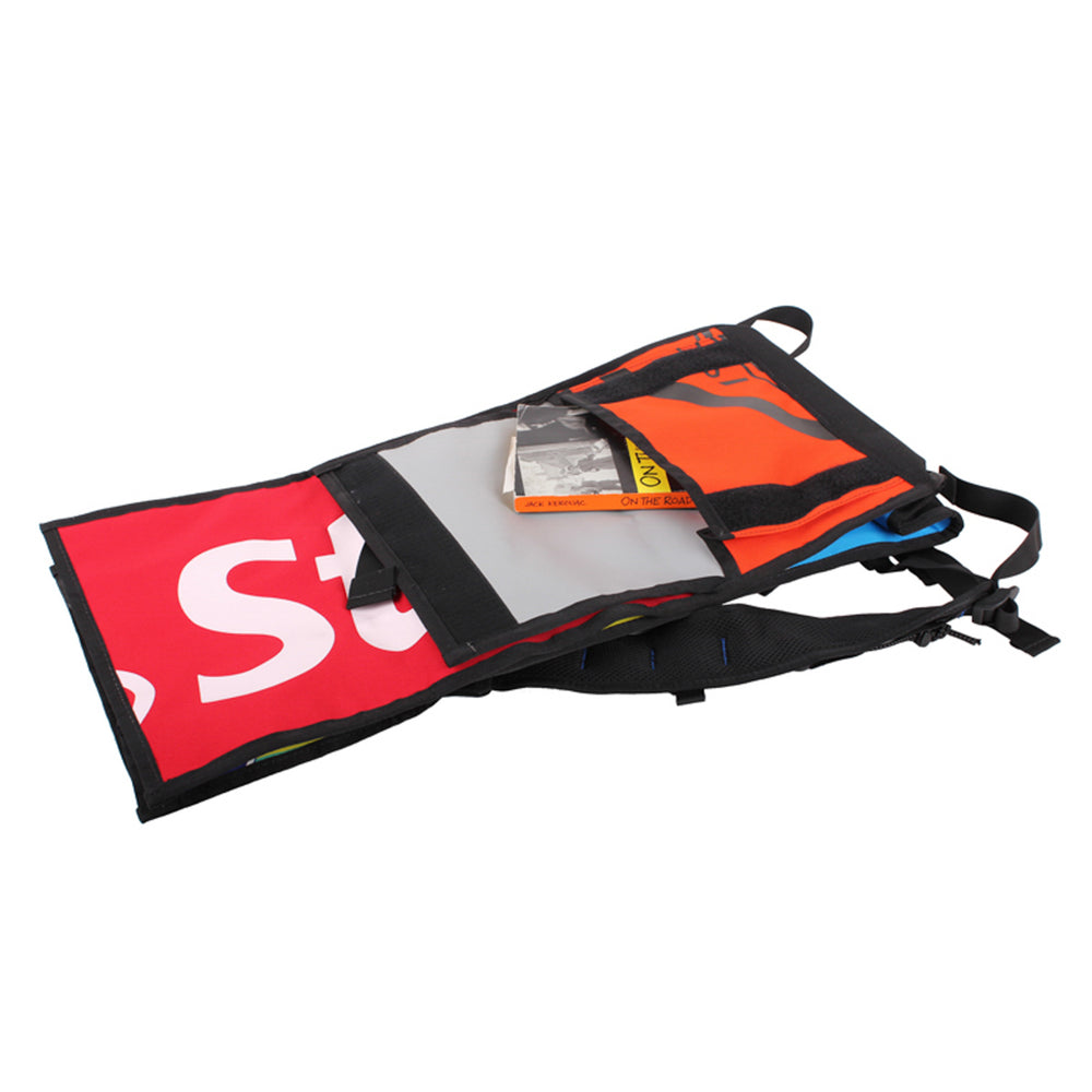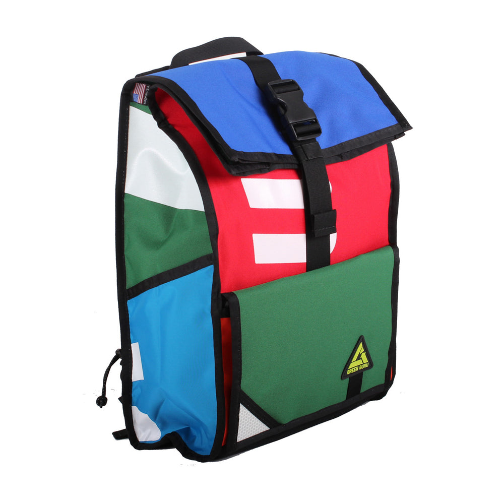 Made from the ultimate hybridization of upcycled, recycled and conventional materials. We started with colorful upcycled industrial fabrics , then added upcycled reflective street signs, upcycled new shoulder harnesses and some new fabrics for finish. The Joyride's combination of upcycled durable materials and performance build, give this pack the technical aspects that will keep your gear close and dry.
