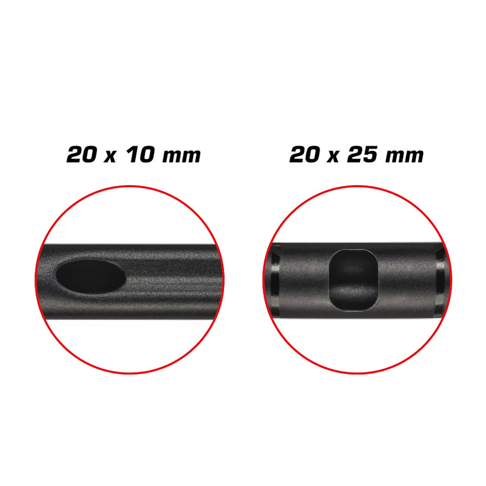 Thanks to the special shape of the M-Bar i 31.8, the grips and the handlebar clamp are in the same axis-neutral position, which has the advantage that in spite of their ergonomic angle of grip the handlebars do not experience any length loss. This model, if required, can be shortened by up to 100mm without difficulty. (Safety Level 6)