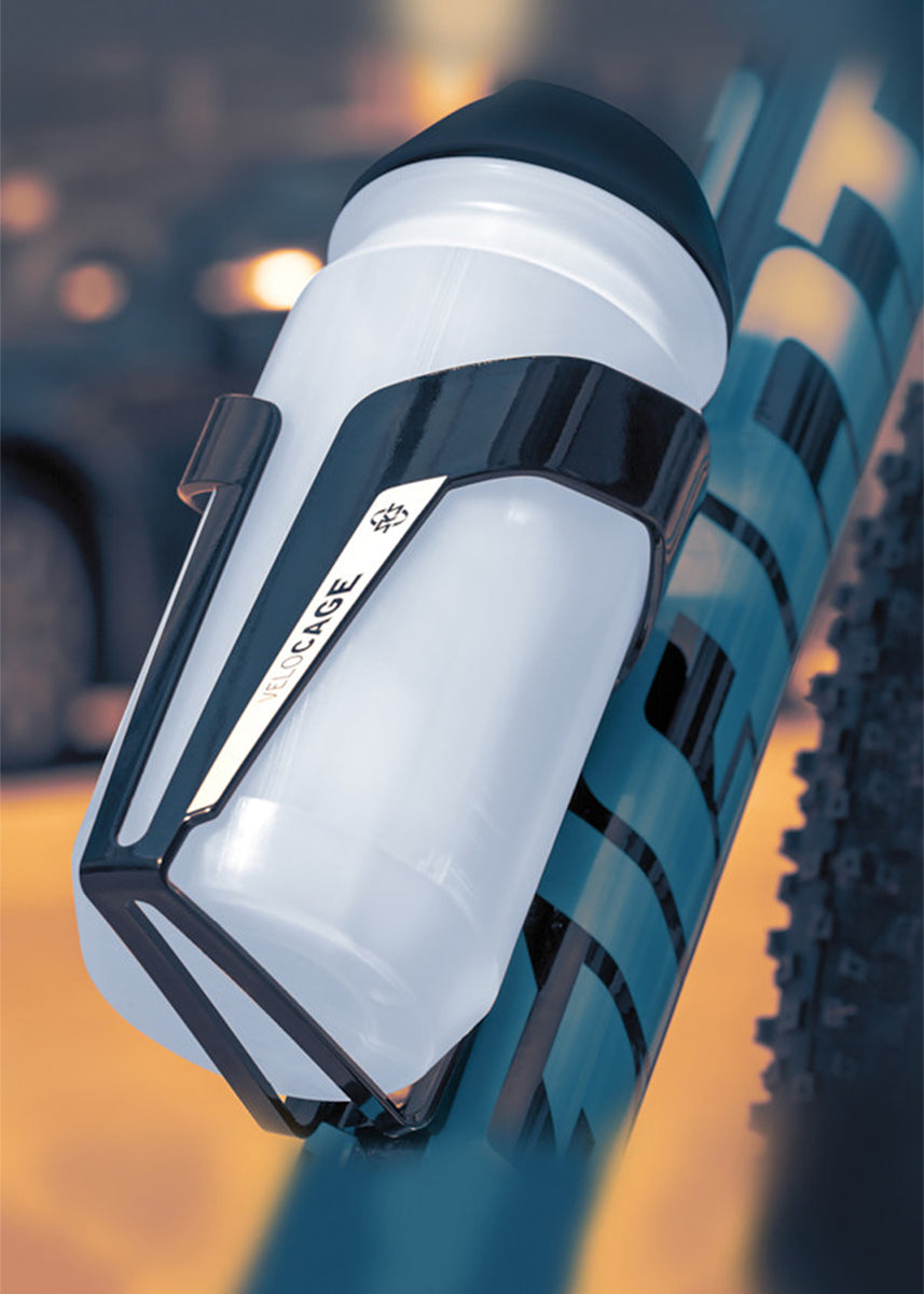 The Velocage is lightweight and features a sporty look. It guarantees a secure hold whether you’re riding on the street or over rougher terrain. Most bicycle bottles can be easily inserted and removed.