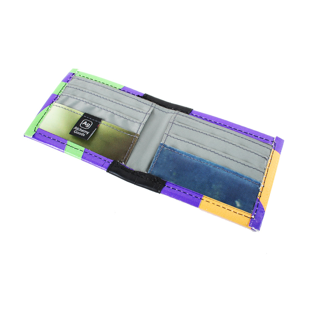 STYLISH WALLET WITH MULTIPLE POCKETS. The Bellevue Wallet is our new bifold wallet made out of upcycled advertising banners. The Bellevue features 6 internal pockets for organizing your credit cards and one bill/cash pocket.