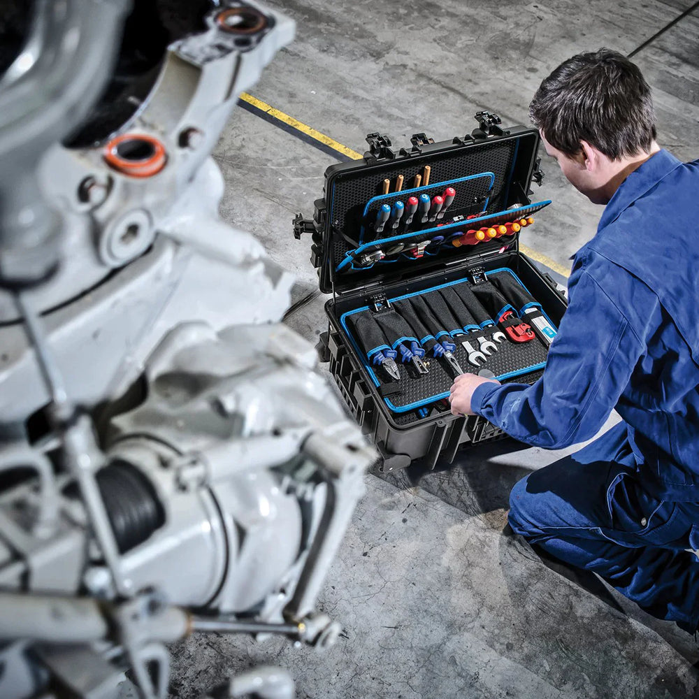 Impact-resistant, sturdy, and splashproof: The Jumbo 6700 can take anything. The dustproof, temperature-stable case is practically made for outdoor use. With a shell made of impact-resistant polypropylene, it keeps everything securely and dependably in place at all times.