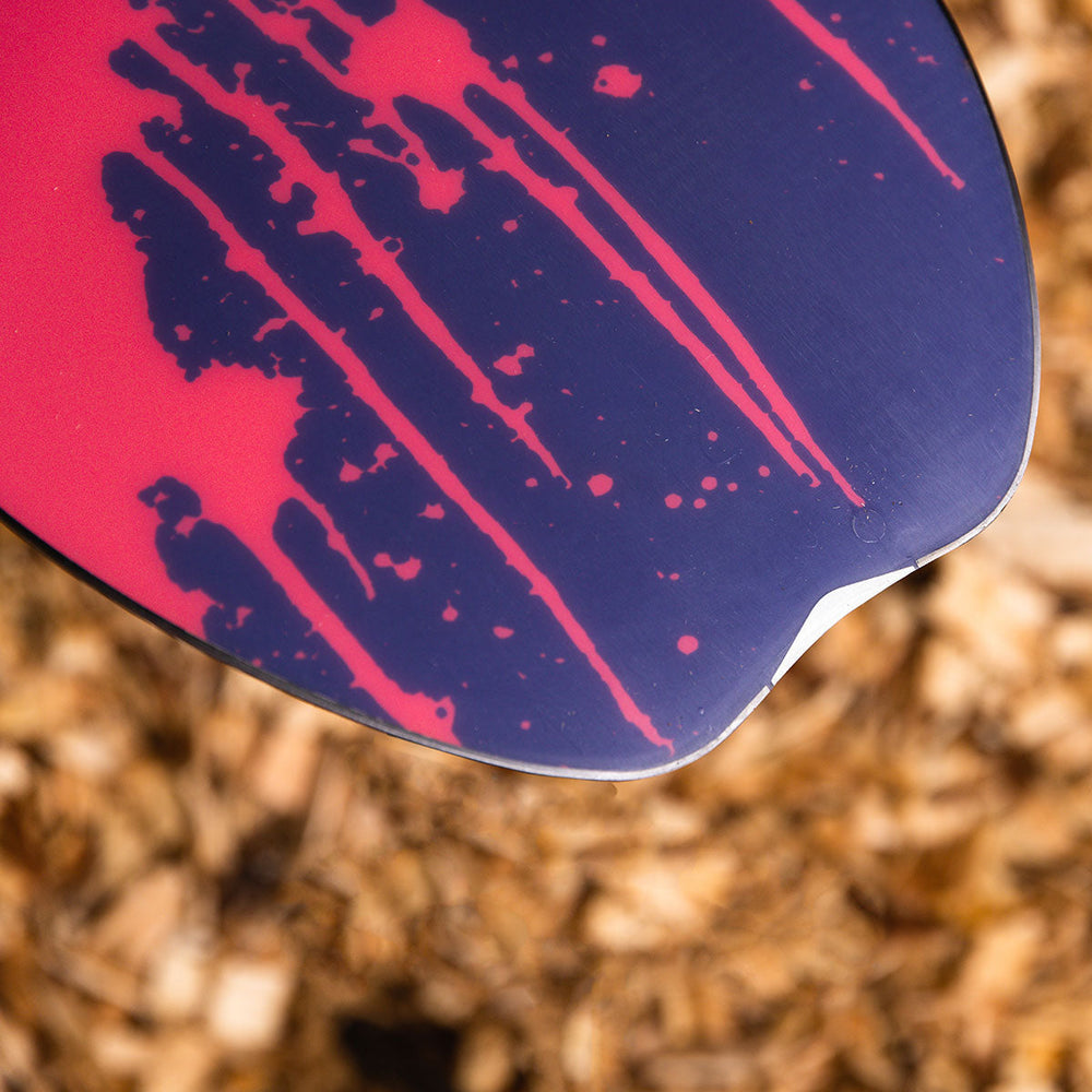 As kids grow up they need bigger boards and Slash saw it as a good excuse to open up their cam-rockered park board to the younger punks and smaller women. This hybrid shape has all the pop you can ask for with camber between the feet and the carbon stringers are positioned to give you that amazing pop of camber while retaining the forgiveness of rockered tips. The progressive sidecut allows for swift slashes and gives this board a real flow of movement.