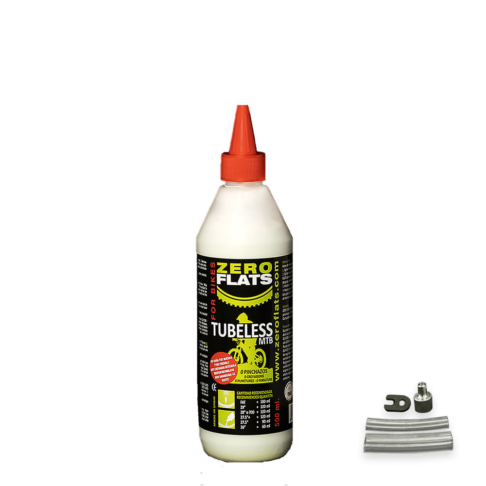 - BONUS TOOLS INCLUDED: Each ZERO FLATS TUBELESS 250ml and 500ml bottle comes with a blister pack with the following tools so that they can be readily put to use - One 4.5cm fat tube (for Schrader valve), one 4.5cm thin tube (for Presta valve), one A-Type tool (for Presta valve), and one tool (for Schrader valve).