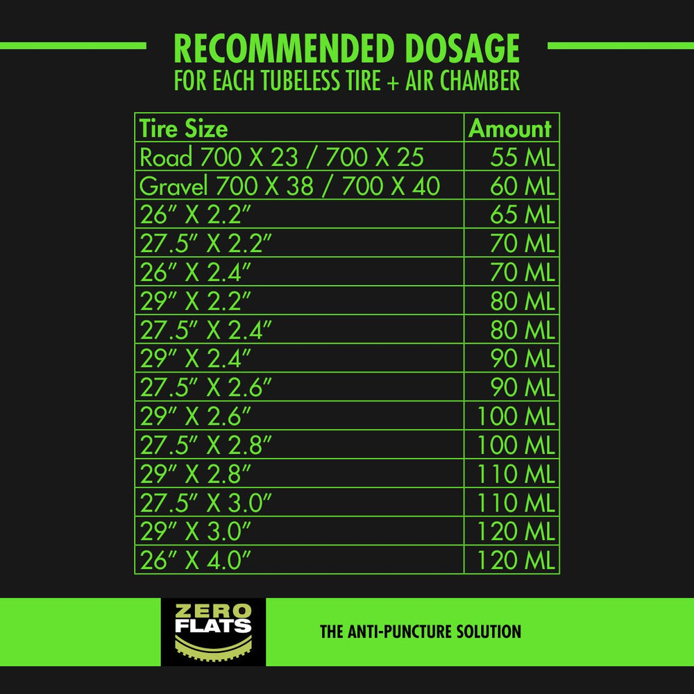 - ZEROFLATS is only intended for bicycle tires and is not recommended for cars / motorcycles.